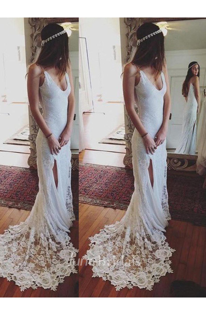Sheath Straps Sleeveless Lace Court Train Wedding Dresses June