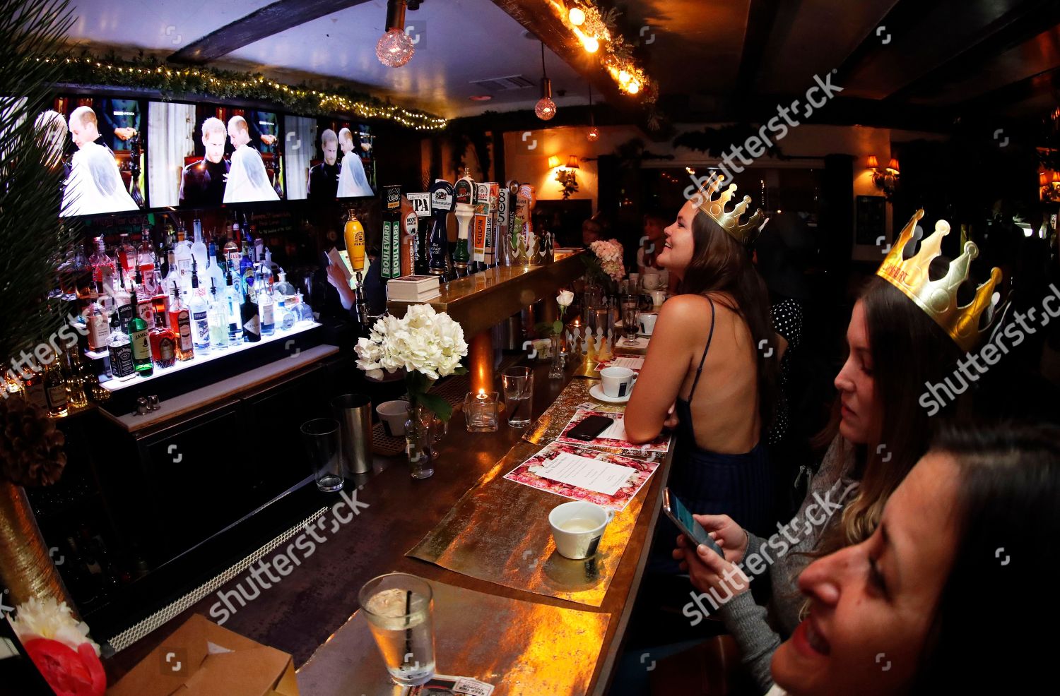 Pub Goers Wearing Crowns Watch Royal Wedding Editorial Stock Photo